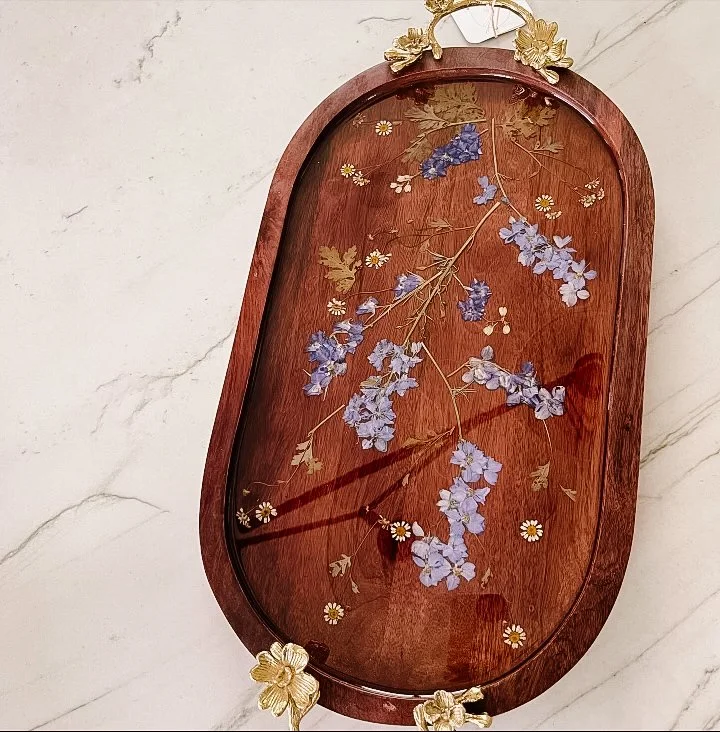 Framed Floral Class- May 15th Khara Collective from $65.00 Gold Bow Platter $60.00 Sold out Gerber Daisy Board $65.00 Sold out Peony Lazy Susan $130.00 Sold out Floral Bookmark $9.00 Flower Heart Trinket Dish $18.00 Custom Order for Sarah - Forest & Fern $0.00 Sold out Custom Order for Claire $0.00 Sold out